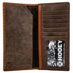 This Hooey rodeo wallet features basketweave detailing the exterior and brown interior and includes our custom hooey brand woven logo liner.