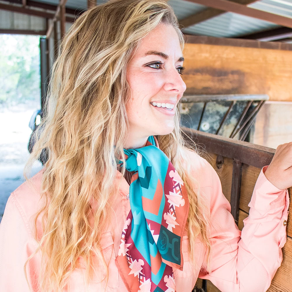 Be the first to review “HOOey “Aztec Thunderbird” Turquoise/Rust Wild Rag” Cancel reply