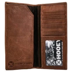 This Hooey rodeo wallet features basket weave embossed roughout detailing with brown leather double welt edge and includes our custom hooey brands woven logo liner.Ā
