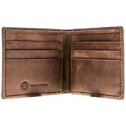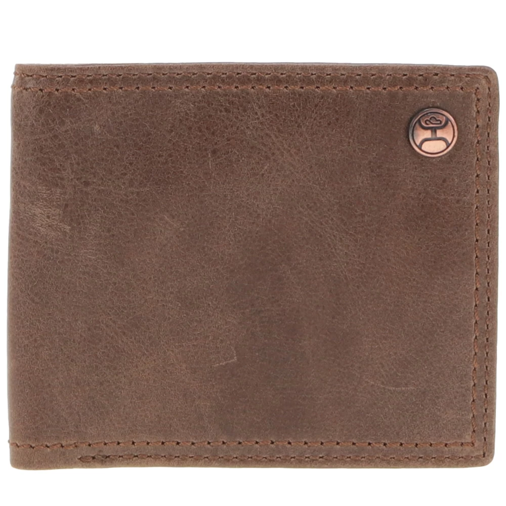 This Hooey bifold wallet features a smooth brown exterior and interior with a brown double-stitched accent edge and includes our custom hooey brand woven logo liner.Â