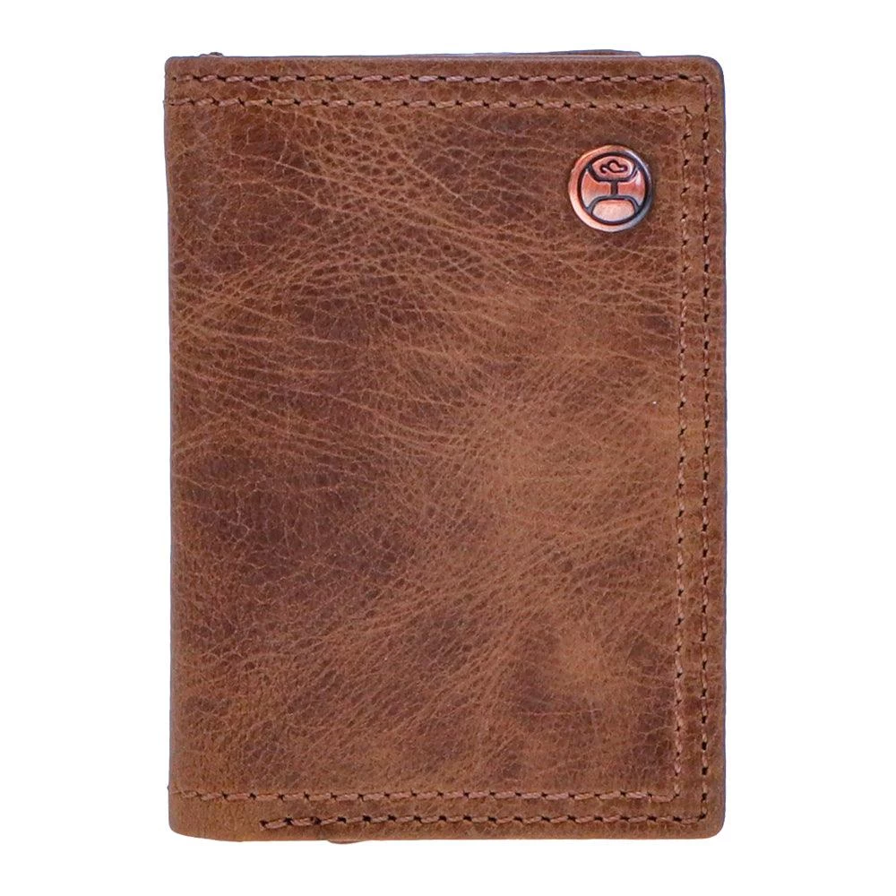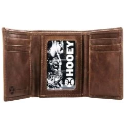 This Hooey trifold wallet features smooth brown exterior and interior with brown double stitched accent edge and includes our custom hooey brands woven logo liner.Â