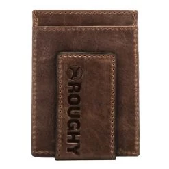 This Roughy money clip wallet features brown leather, detailed with red leather accent pocket.