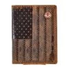 This Hooey rodeo wallet features a laser cut hands-up Hooey Logo, detailed with nomad print inlay exterior and tan interior, and includes our custom hooey brands woven logo liner.