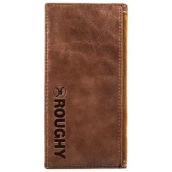 This Roughy rodeo wallet features brown exterior and interior with brown double welt edge and includes our customer hooey brands woven logo liner.