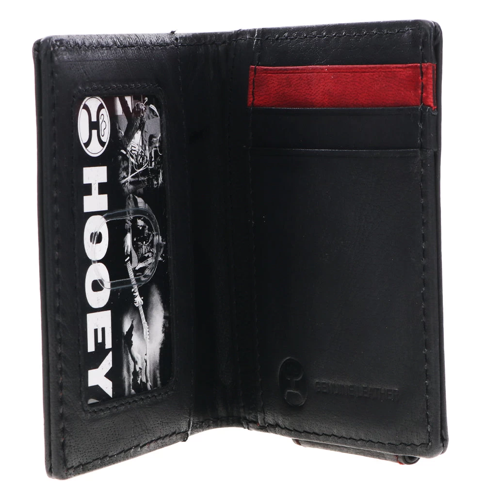 This Hooey bifold money clip wallet features serape print with smooth black exterior and interior and includes our custom hooey brands woven logo liner.