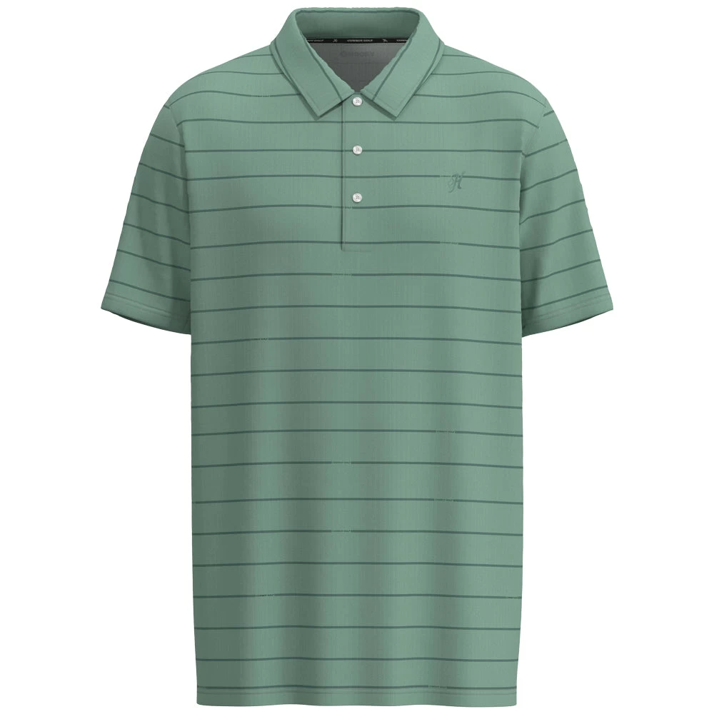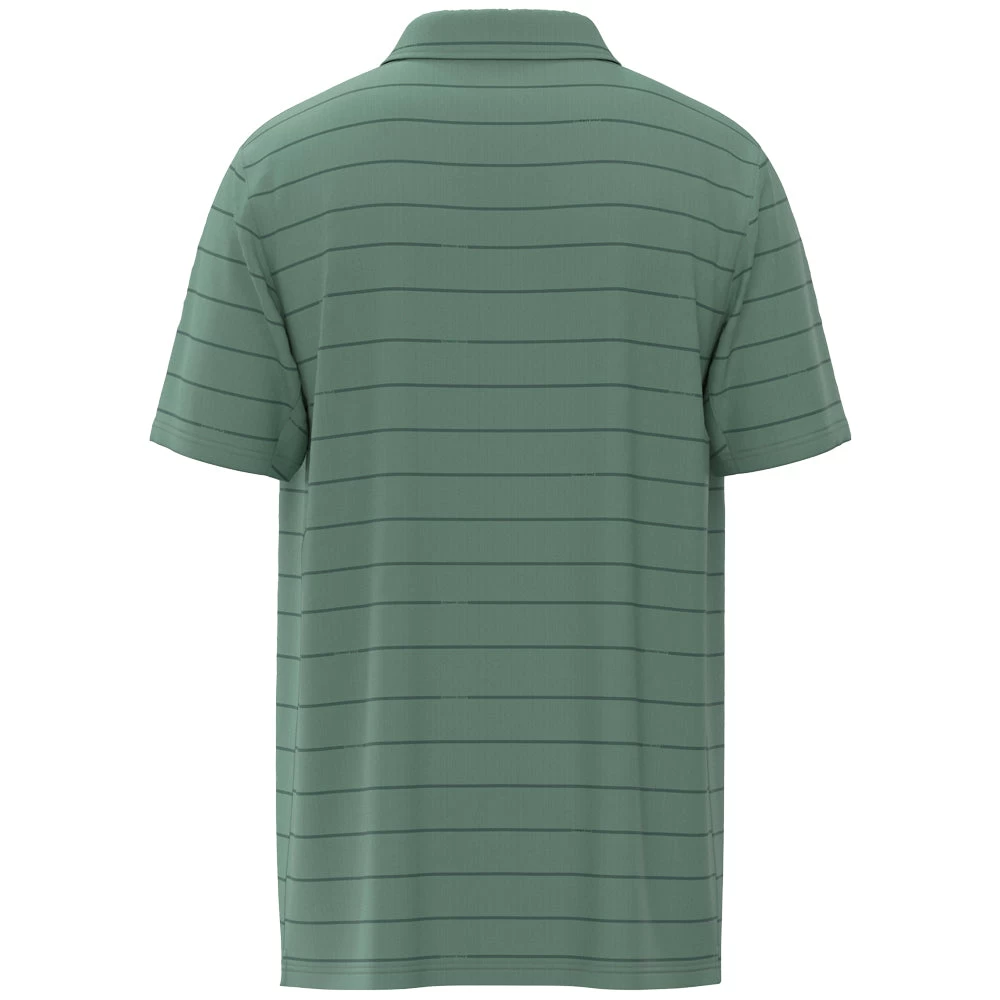 Fabricated with a super-plush feel, this polo features an underarm seam construction to allow for free-flowing movement. It is fitted with moisture-wicking, quick-drying qualities, and UPF 30 sun protection, making it ideal for outdoor activities. For convenience, it is easily washable and boasts an athletic fit and an embroidered logo. Lastly, the piece is rendered in sage green with grey stripes.