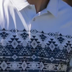 This high-performance polo features a super-soft construction and underarm seam construction for enhanced mobility. It is designed with moisture-wicking and quick-drying properties, along with UPF 30 sun protection. For ease of care, this polo is crafted for easy washing and wearing and features an embroidered logo and an athletic fit. This style is offered in a white and blue Aztec pattern.