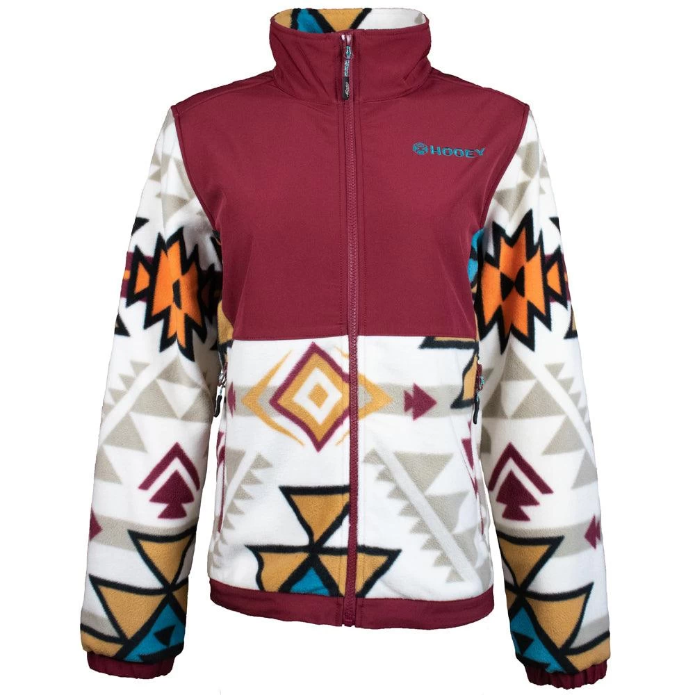 This Burgundy/Cream tech jacket for girls features a super comfortable and casual look when you are out in the cool or cold weather. Enjoy the Hooey Ride-Tight Adjustable Waistband, fleece lining, and 3-pocket design for complete durability and performance. Make the Hooey girls Jacket Collection your go-to choice this winter season.