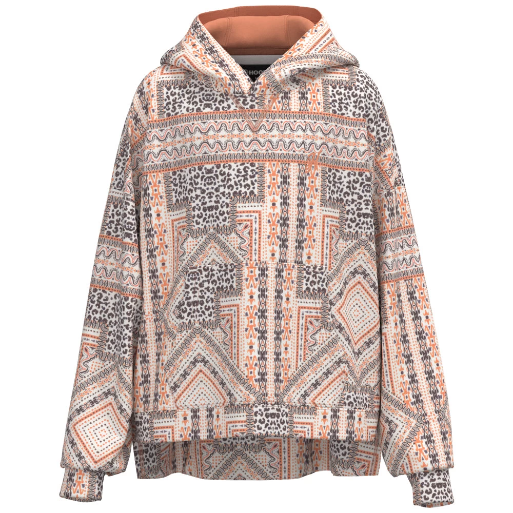 This roomy hoody from Youth features a loose, slouchy fit, kangaroo pocket, hidden phone pocket, dropped shoulders, and non-restrictive vented hem for unrestricted comfort. Constructed with a 3-piece hood, it also offers easy layering for a cozy and roomy fit in elegant pink and black multi-pattern.