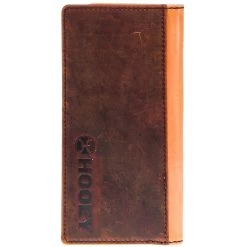 This Hooey rodeo wallet features hand-tooled leather detailed with heat branded 2.0 hooey logo, laser cut details & turquoise leather inlay. Tan/Turquoise exterior & interior and includes our custom hooey brands woven logo liner.