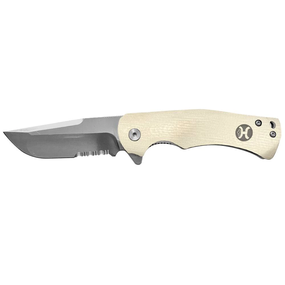Serrated Blade "White G10 Drop Point Flipper " Hooey Knife