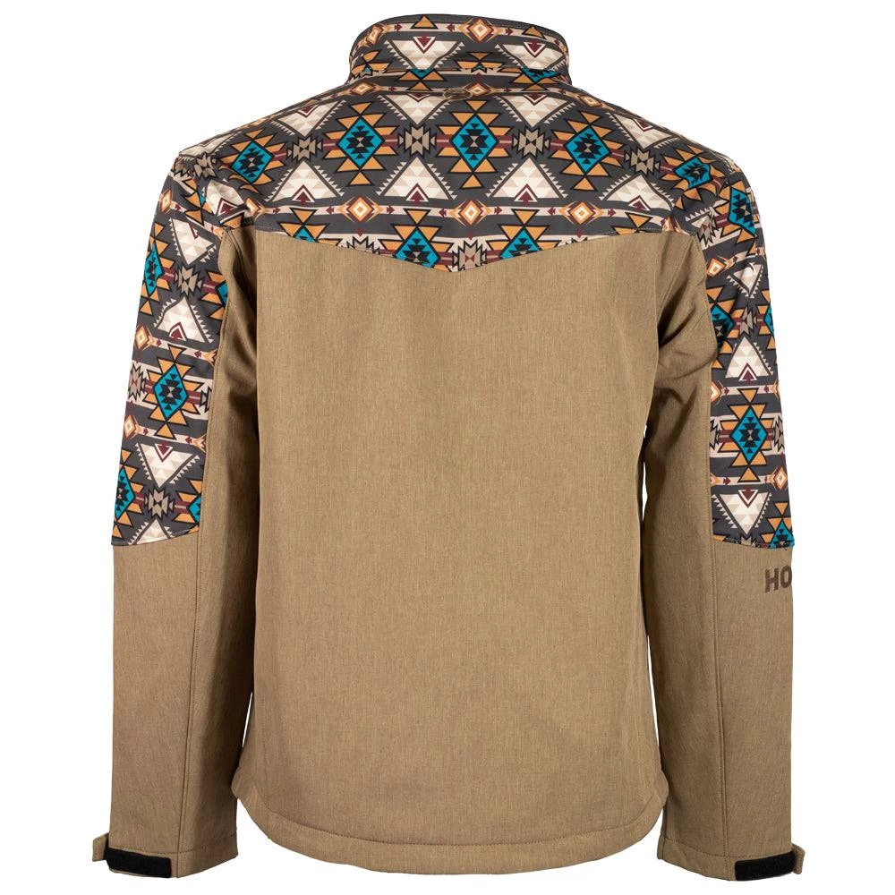 This Hooey tan with Aztec detailing youth softshell fleece jacket is perfect for cool or cold weather. Combat the wind or rain with this durable jacket, featuring multifunctional hidden pockets and a headphone holster. 96% Polyester and 4% Polyurethane. Casual wear for your everyday tasks.